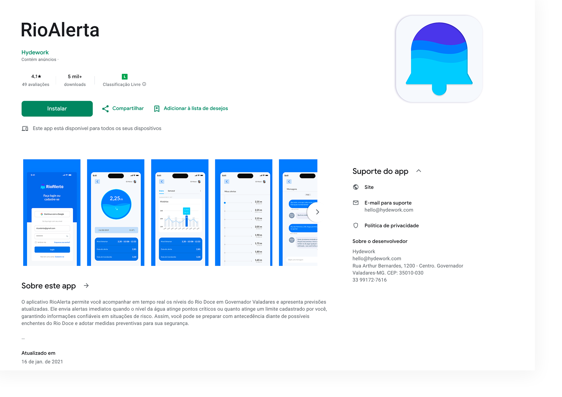 The application was created to simplify and make river level monitoring more accurate, providing real-time information that helps residents and local authorities make preventive decisions. In doing so, it seeks to reduce the risks of material and physical losses, as well as minimize the psychological impacts related to anxiety and stress caused by floods.